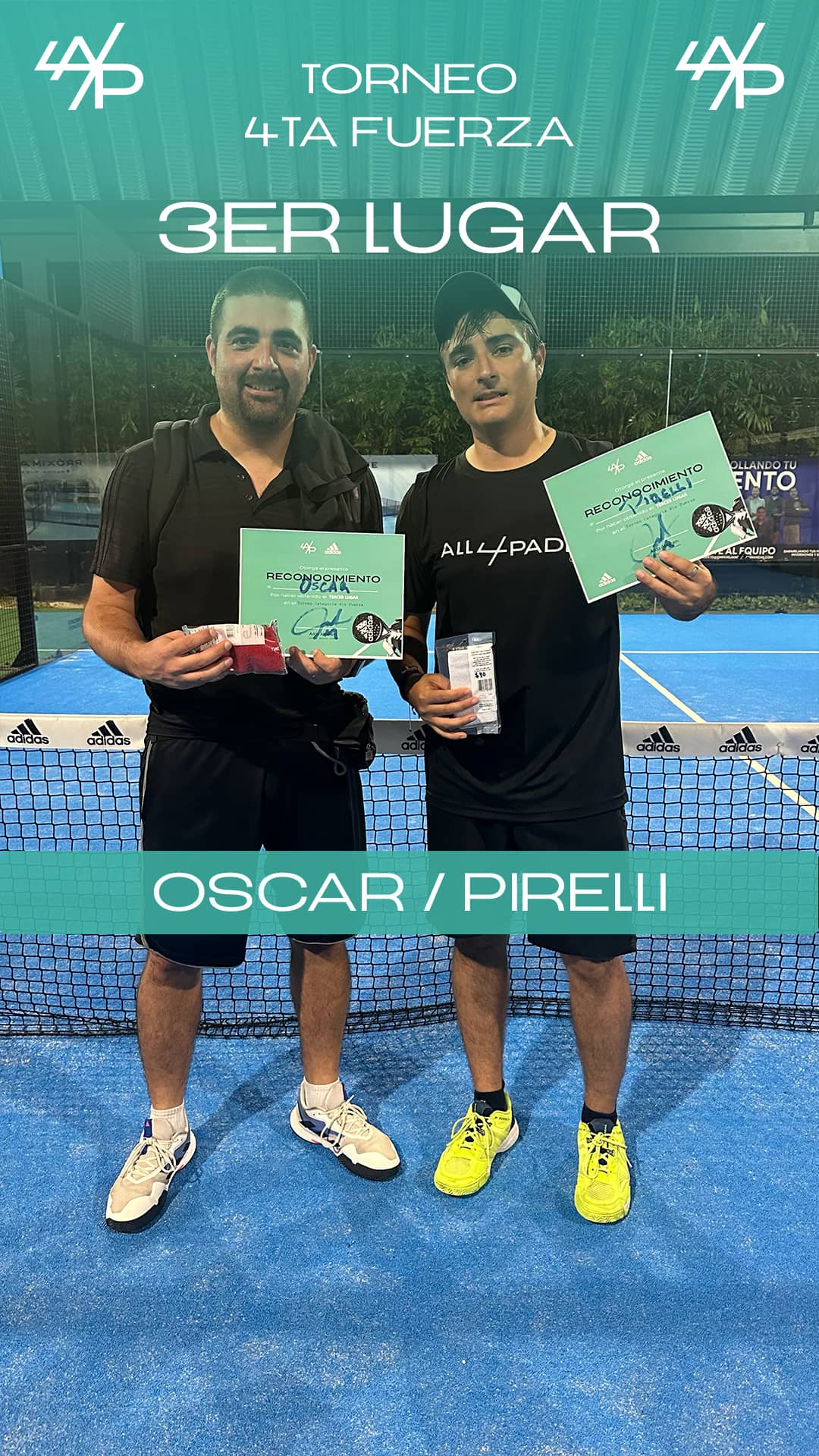 La confirmación debe incluir nombre y apellido de ambos jugadores caso contrario, no serán contemplados en la lista final.